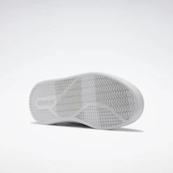 Zapatillas junior de media caña de la marca Reebok en color blanco y detalles marino, cierre de cordones, suela de caucho y forro textil ideales para lucir un look moderno.